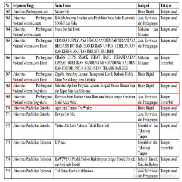 Kedua tim ini dibina secara intensif oleh Unit Pelaksana Akademik Pusat Karier dan Kewirausahaan (UPA PKK) UPN “Veteran” Yogyakarta, yang berperan aktif dalam mendampingi mahasiswa mengembangkan ide bisnis hingga menjadi usaha potensial yang siap bersaing di dunia industri. Melalui program pelatihan, mentoring, dan pendampingan berkelanjutan, UPA PKK terus berkomitmen mencetak wirausaha muda tangguh dan kreatif.